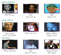 distinctiveness of the music, the genre of the video (interstitials, long-form films, promotional videos) and the reputation of the client. Since most of the text had been moved to the Home page, there was plenty of room to create graphic links to each of the nine video. Two intriguing images from each video were used to build mouse-over buttons which linked to a daughter page containing the video player. In addition to adding color and interest to the page, it became very clear what action the viewer should take.